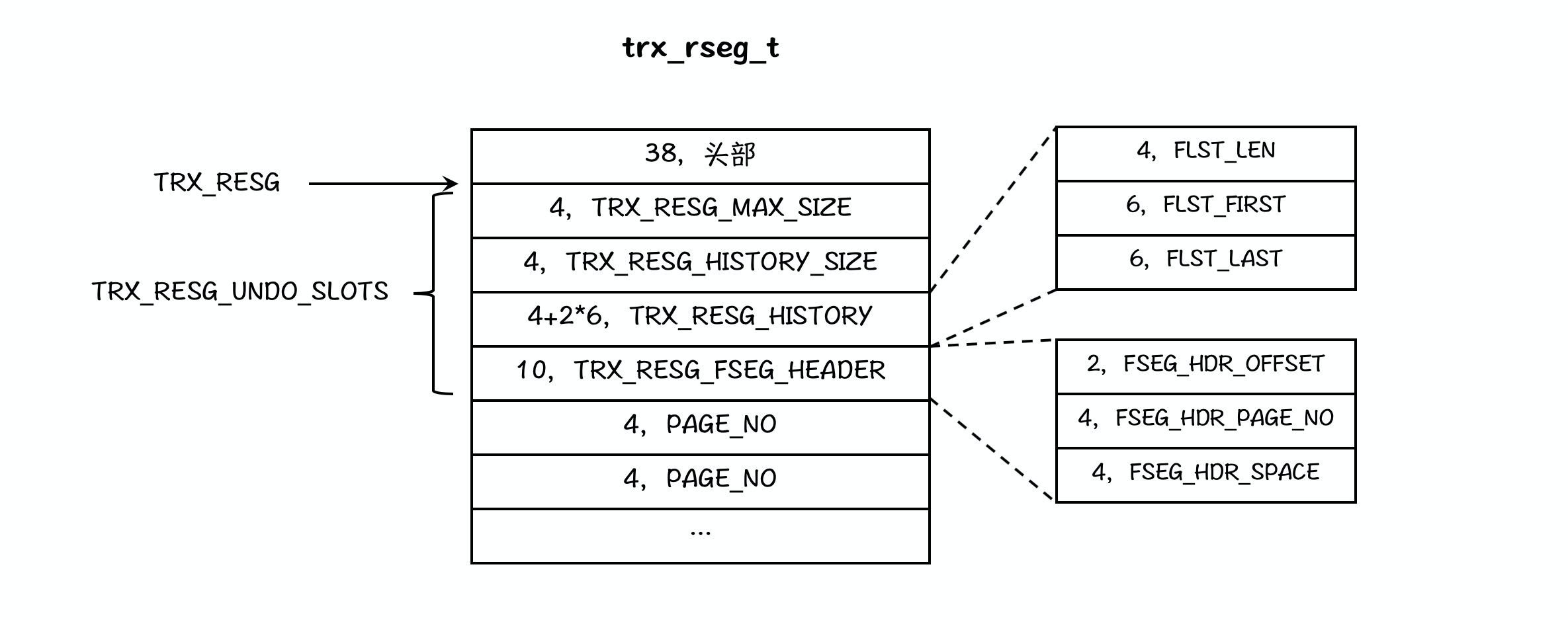 Undo slots, 可以理解为undo page的槽位,1个回滚段内部有1024个槽位,每个槽位可以指向FIL_NULL或者指向一个真实的undo page地址;回滚段为每个读写事务分配槽位时,只能分配指向FIL_NULL的槽位;