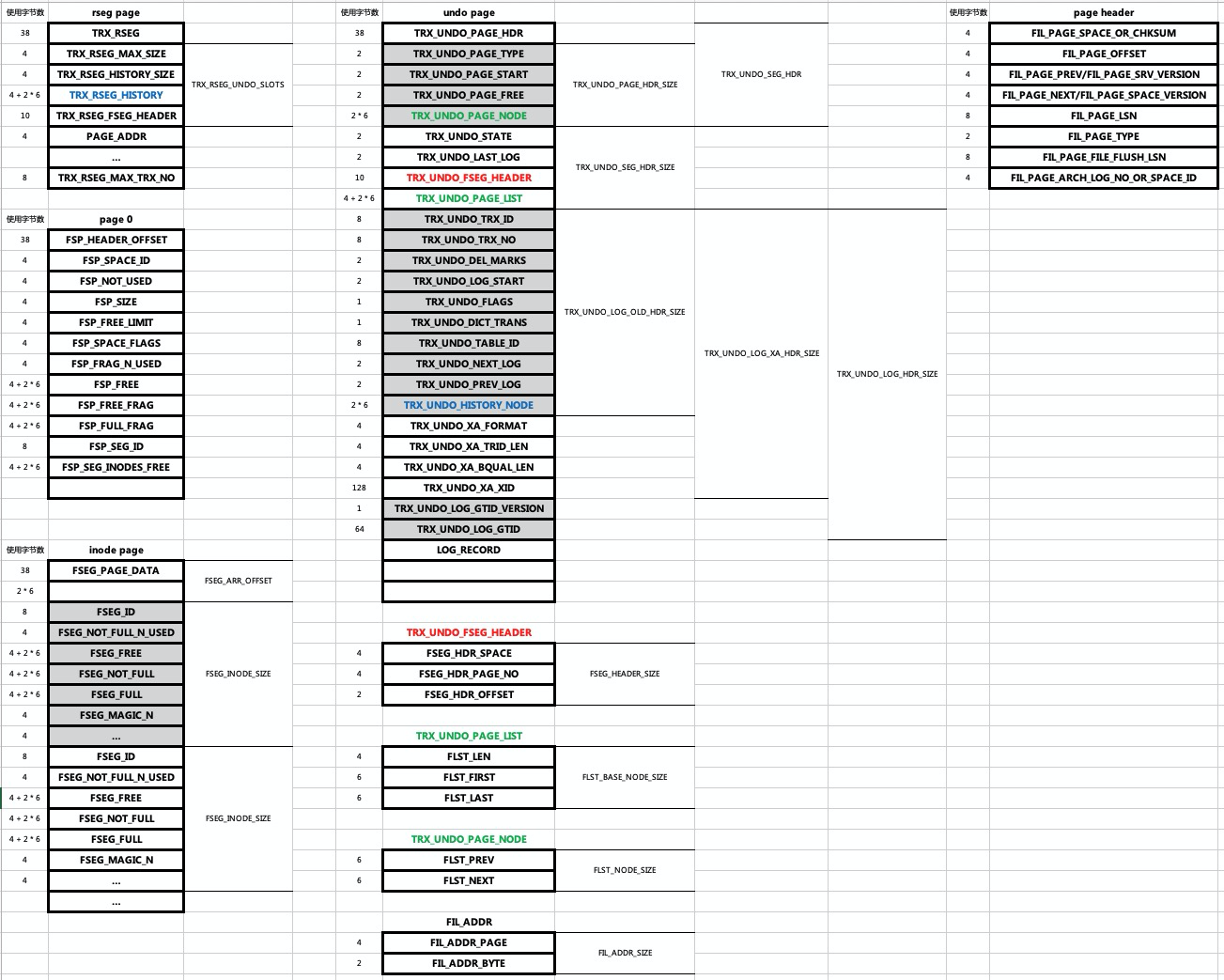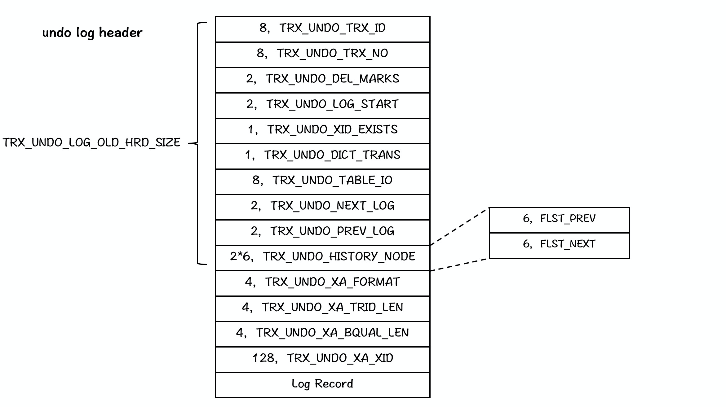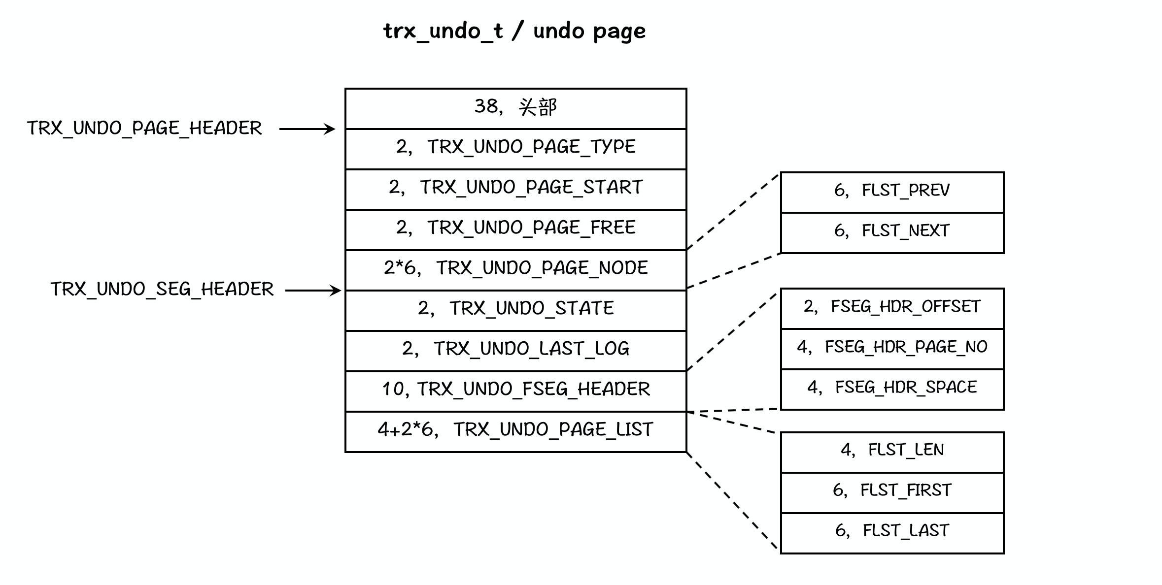 TRX_UNDO_PAGE_LIST:维护一个undo page的链表,与TRX_UNDO_PAGE_NODE关联,添加时加到尾部